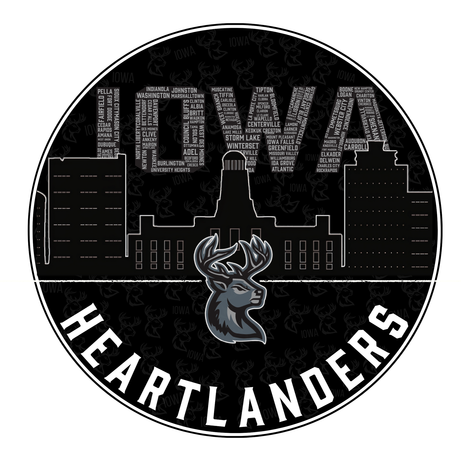 Wording: Iowa Heartlanders - Includes fine details with the city names inside the design.