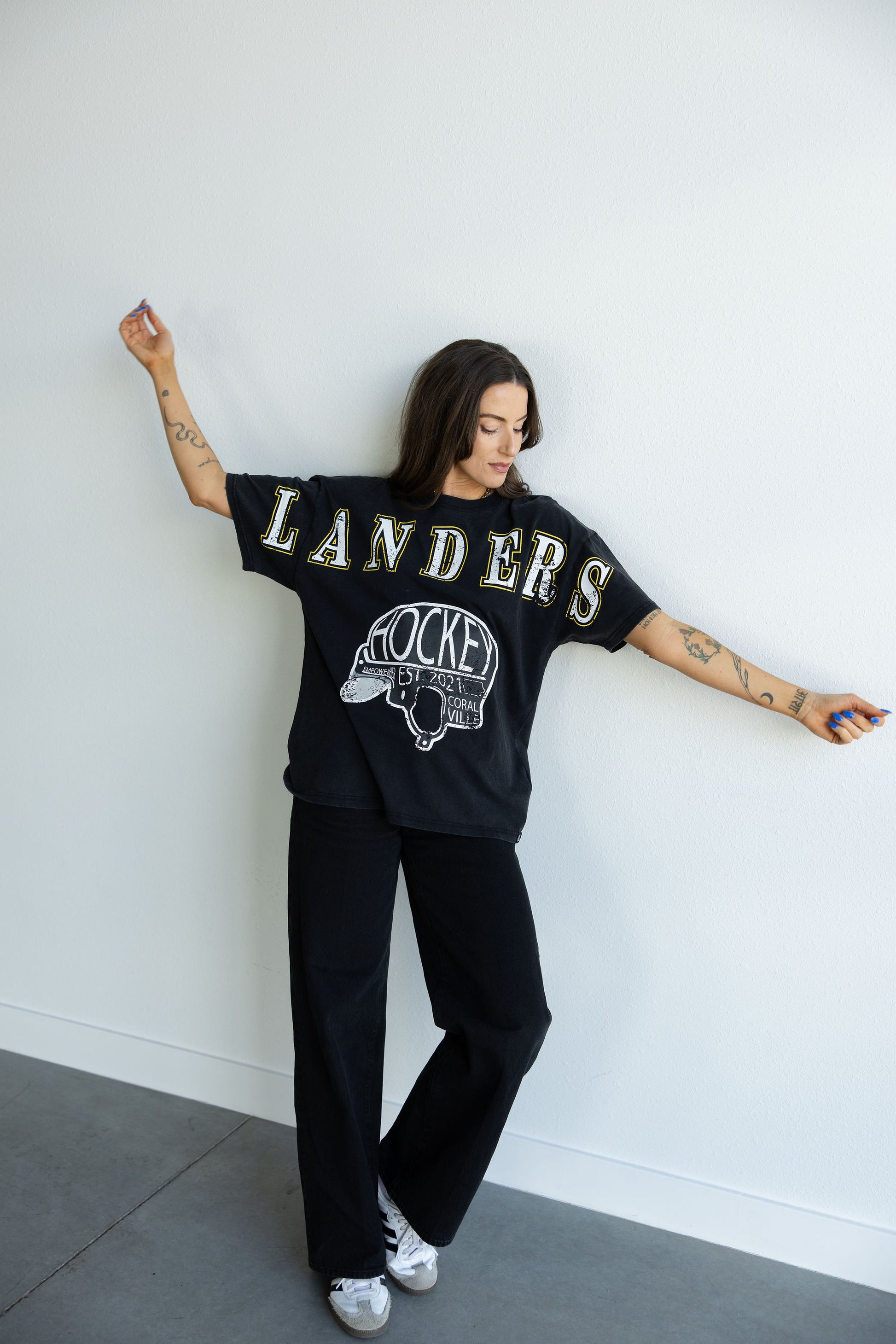 - Design: Oversized, roomy Band Tee fit with a screen‑printed 'Landers' graphic